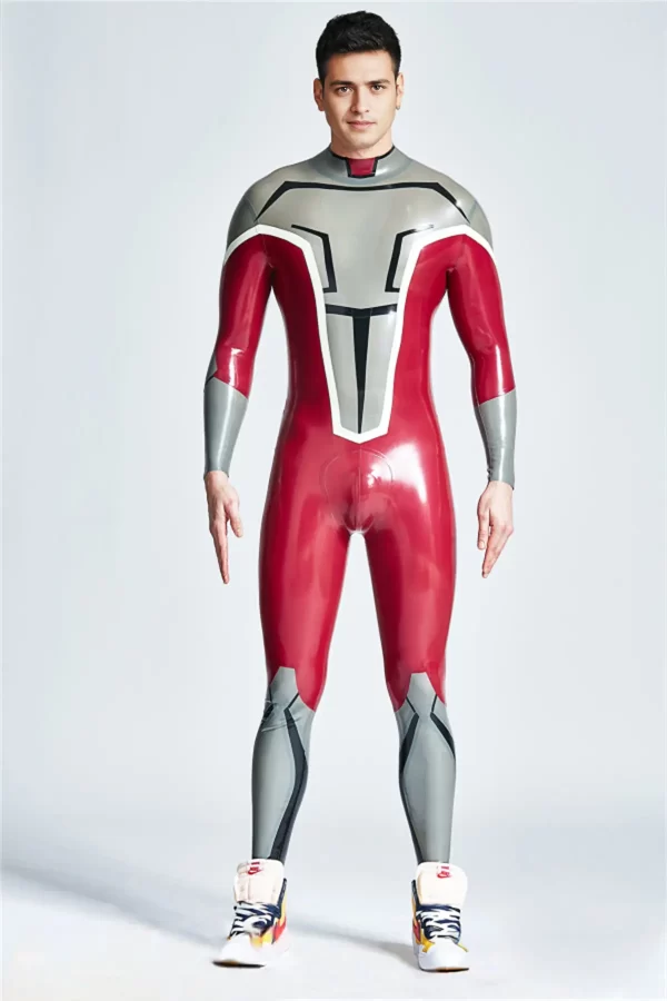 - Detailed design catsuit with front and back contrast color deep plunging panel;