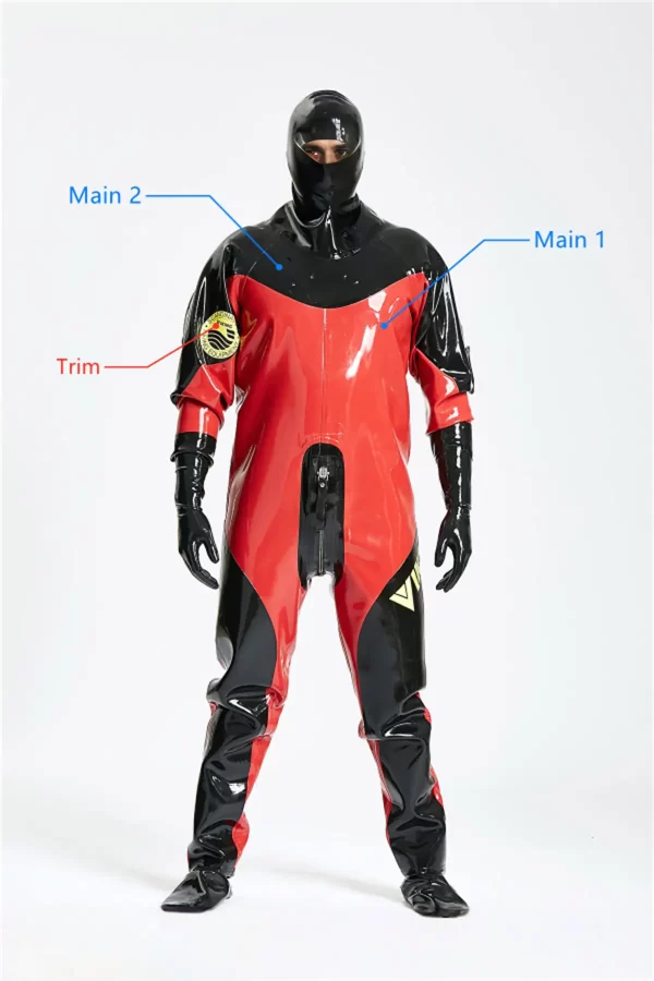 - Drysuit style diving suit in thick 1mm latex modelled on the original Viking brand vulcanized rubber drysuit;
