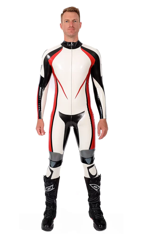 Male Logo Branded Motorcycle Latex Suit
