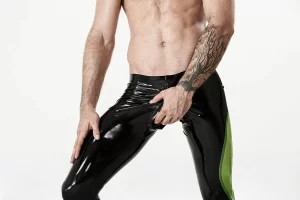 - Contrast color winding pattern from right hip across bum and down the back of the left leg;
