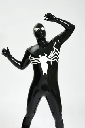 - ‘Spidey’ look catsuit in solid color with contrast ‘spidey’ pattern on front and back torso;
