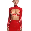 Sexy Pink Latex Bra with Silver Detailing has a classic triangular design. But we’ve added a pinch of recklessness to it – petite piercing from stainless steel on the nipples.