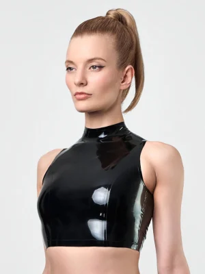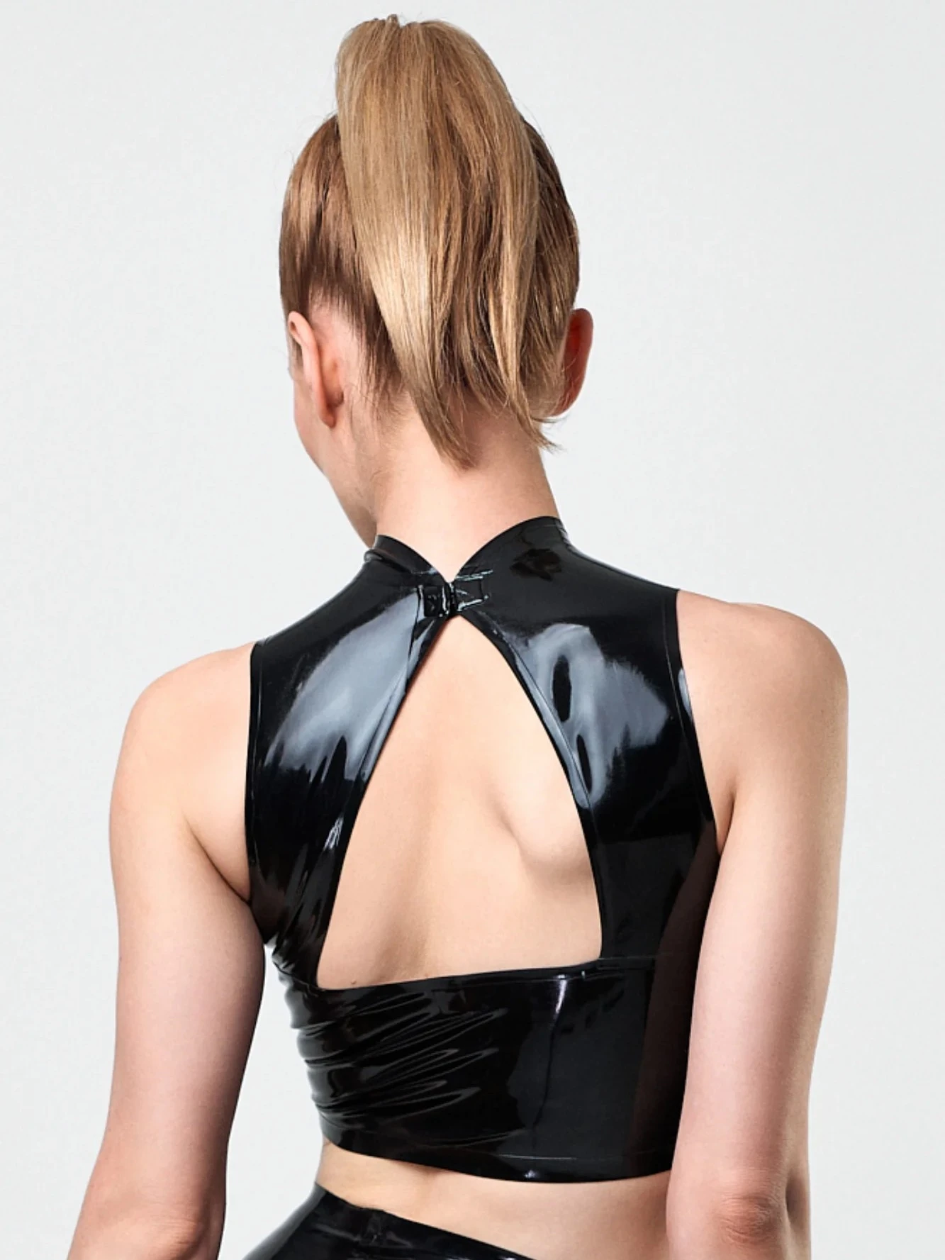 Sporty lines with a sensual twist. Its slim standing collar frames the neckline with clean precision, while the eye-catching triangle cut-out in the back adds a striking, playful